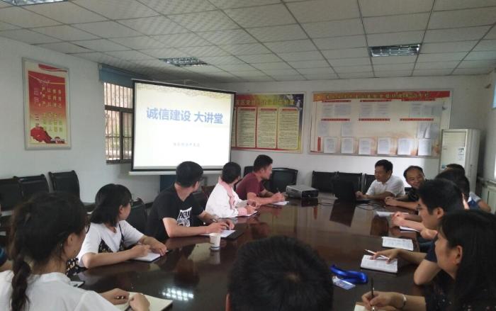 2018年7月3日上午,开发区组织相关部门工作人员开展诚信建设大讲堂活动,宣讲《诚信建设小格言》。