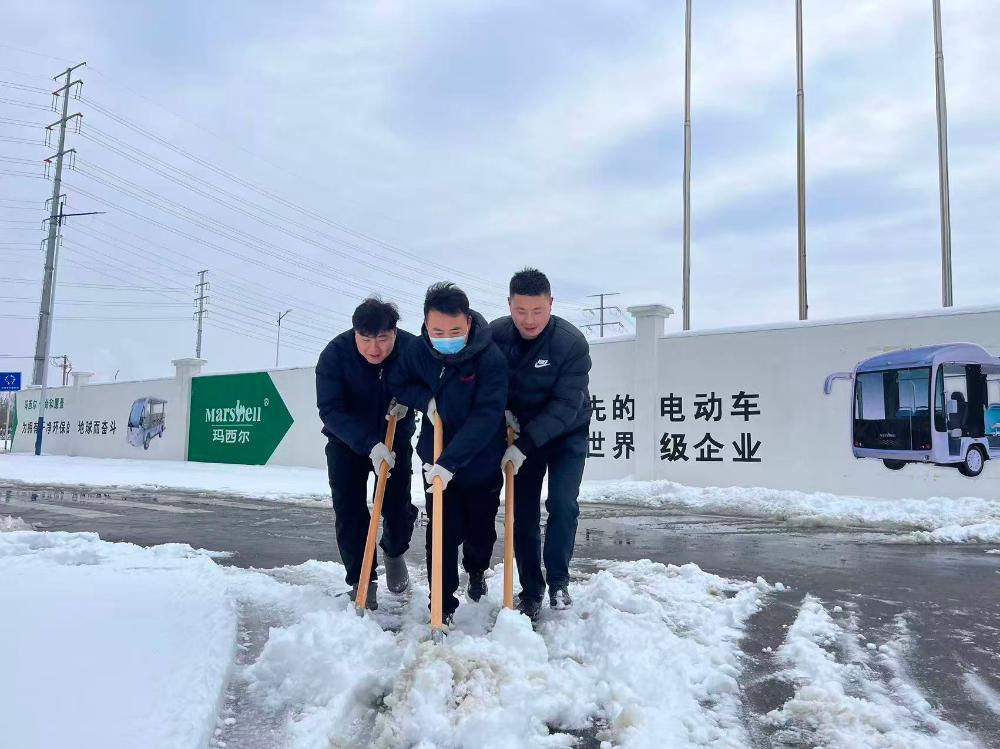 积雪厚重?自有妙招!淮北申欣环保创新采用“人工+机械”协同作战模式,高效打通厂区通道;金淮海党支部耿德银亮出自制的“土制半自动除雪机”,引来众人赞叹;兆基实业代志红书记带领团队轮番上阵,确保物流生命线畅通无阻……党员冲锋在前,职工紧随其后,扫帚翻飞、铁锹铿锵,积雪被层层剥离,露出坚实平坦的道路。