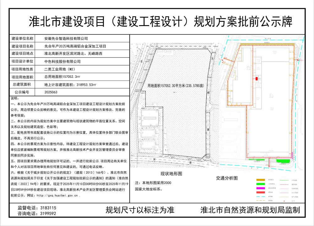 先合年产20万吨高端铝合金深加工项目建设项目(建设工程设计)规划方案批前公示